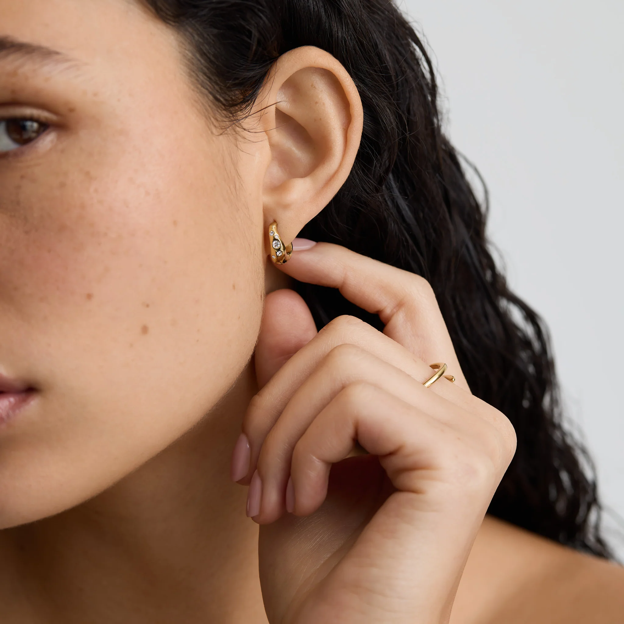 Say hello to the Wave Huggies — understated, effortless, and sprinkled with D. Louise diamonds. Their delicate design adds a hint of elegance to your everyday look.